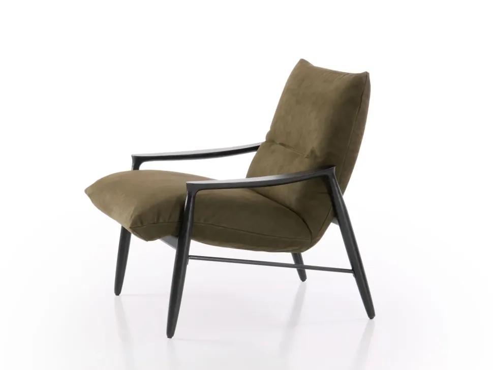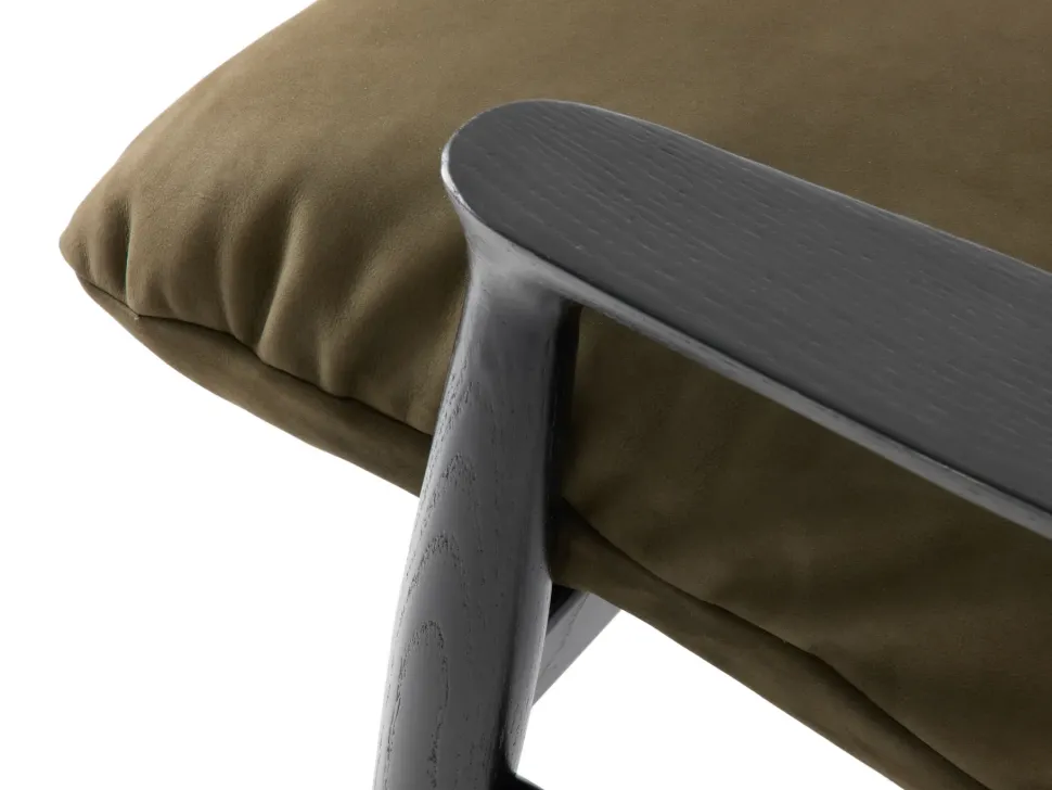 Le cuscinature di seduta e schienale sono generosamente imbottite con poliuretano espanso rivestito in fibra Climasoft con effetto piuma che garantisce una gradevole sensazione di accoglienza ed un ottimo comfort. Il rivestimento è realizzato in pelle ed è totalmente sfoderabile.