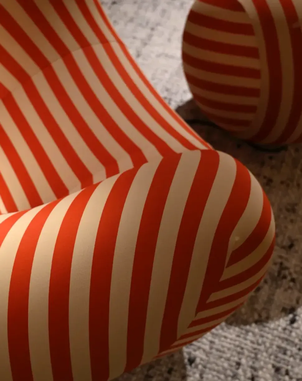 Poltrona mod.Up 50 2000 con rivestimento in tessuto Soara 06 rigato Beige Arancio