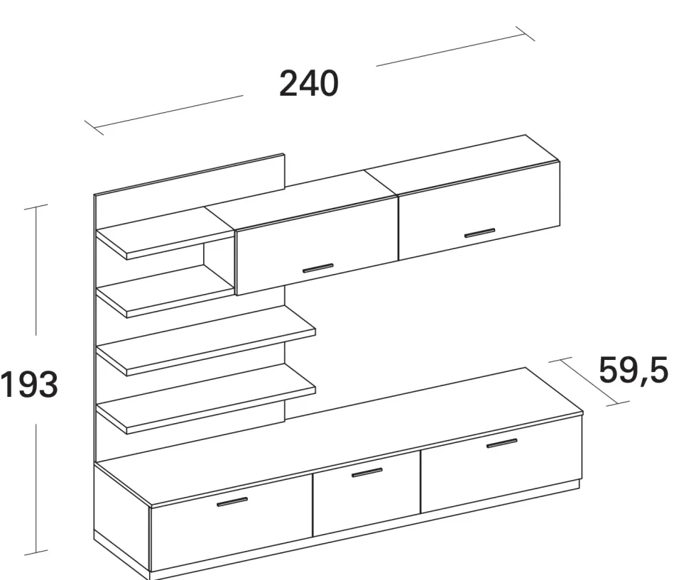 - Inoltre, la Composizione living 240 – 02 di Arrex è dotata di una maniglia con maniglia per una facile apertura e chiusura.