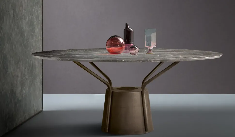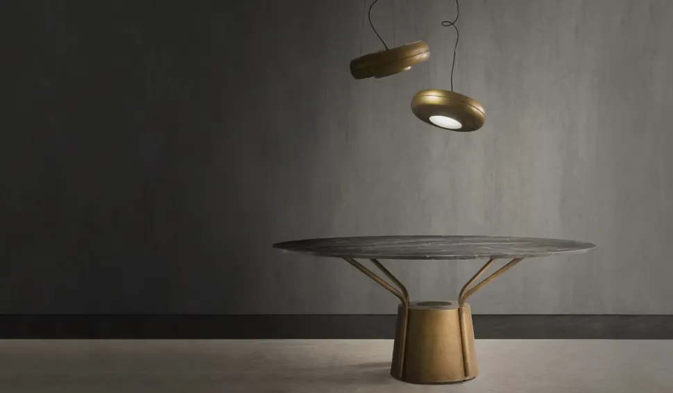Design Volodymyr Karalyus 2018 Ispirato a una mongolfiera, il tavolo Balloon si caratterizza per la singolare struttura e per l’originale basamento in anodic bronze. Il piano in marmo ha forma rotonda ed è disponibile in due misure. La finitura può essere scelta tra le varianti della collezione marmi Flou. TAVOLO BALLOON DI NATEVO Struttura: Anodic Bronze -Categoria 1 in marmo – Misura: Diametro 150 x H 76 Vassoio girevole Lazy Susy escluso dal prezzo VASSOIO LAZY SUSY Reggi vivande con piano girevole in prezioso marmo. -Categoria 1 in marmo – Misura: Diametro 100 cm – Piano girevole Il prezzo si riferisce al prodotto come da descrizione sopra riportata. Spedizione esclusa. Tavolo Balloon disponibile in: – Categoria 1 in marmo nelle finiture: Bianco di Carrara lucido, Emperador lucido – Categoria 2 in marmo nelle finiture: Orobico Grigio spazzolato opaco, Silk Georgette, Arabesco – Categoria 3 in marmo nelle finiture: Calacatta Oro opaco, Calacatta Oro lucido, Bamboo opaco Lazy Susy vassoio disponibile in: – Categoria 1 in marmo nelle finiture: Bianco di Carrara lucido, Emperador lucido – Categoria 2 in marmo nelle finiture: Orobico Grigio spazzolato opaco (N063), Silk Georgette, Arabesco – Categoria 3 in marmo nelle finiture: Calacatta Oro opaco, Calacatta Oro lucido La descrizione si riferisce all’articolo fotografato e l’immagine è a solo scopo esplicativo. Il prodotto è disponibile nelle diverse varianti e finiture sopra descritte, per qualsiasi necessità e chiarimenti vi invitiamo a contattarci direttamente.