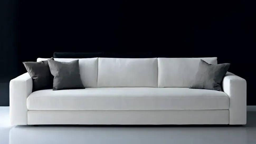 Purezza formale, semplicità ed eleganza sono le caratteristiche salienti di City, il divano design che è un passepartout in grado di adattarsi a svariati ambienti. Questa versione di salotto non dispone del letto integrato. La struttura in legno sostiene i cuscini di seduta in poliuretano espanso indeformabile a densità differenziata ricoperto da falda acrilica, mentre i cuscini di schienale sono in morbida piuma e il molleggio è con cinghie elastiche incrociate. Realizzabile in pelle, tessuto completamente sfoderabile nella versione e soltanto per i cuscini di seduta e schienale in quella in pelle.