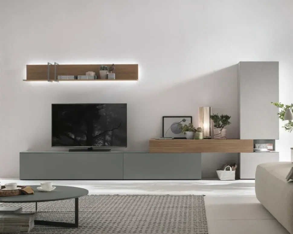 - Materiale laminato materico: Il materiale laminato materico utilizzato per questo modello conferisce un aspetto elegante e moderno alle pareti attrezzate, garantendo anche una maggiore resistenza e durata nel tempo.