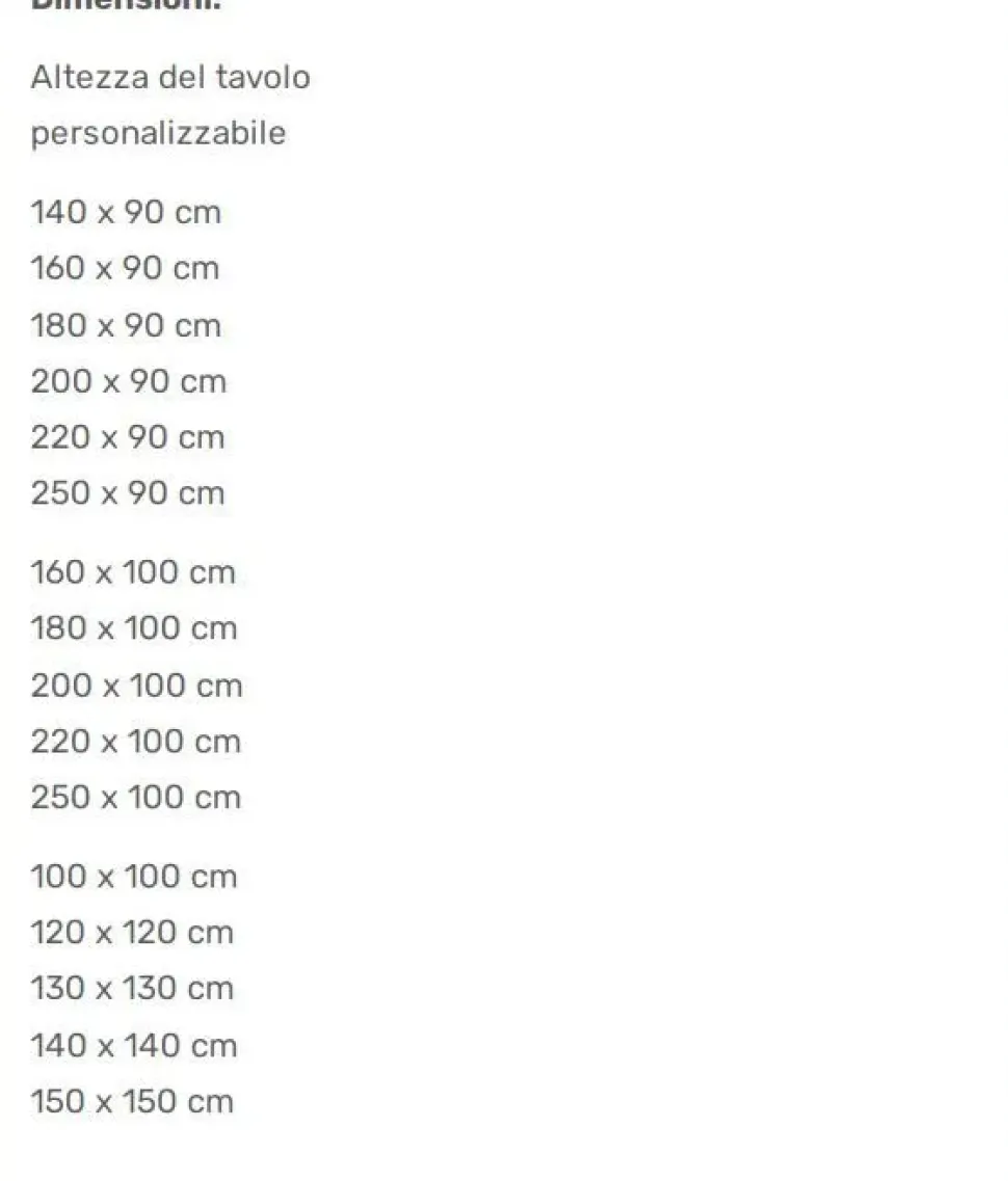 Disponibile in 23 misure differenti fisso e allungabile, rettangolare e quadrato ed in tutte le finiture a cartella