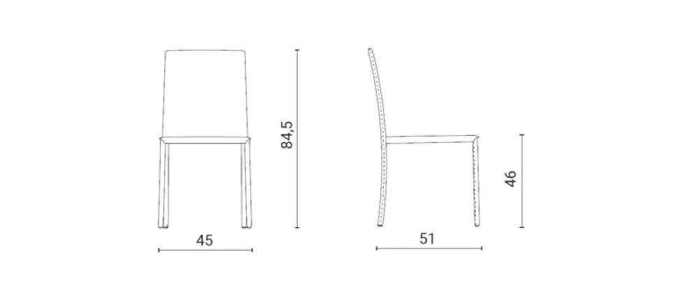 - Tipologia sedia: senza braccioli
