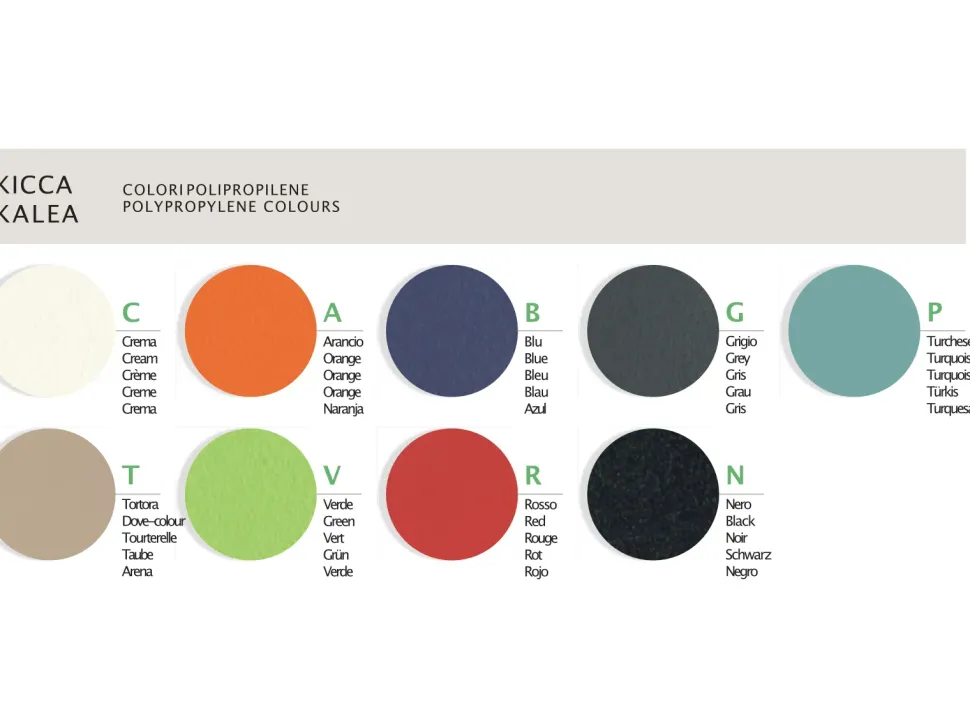 Sedia Kicca 4 gambe in polipropilene e telaio verniciato alluminio, bianco o nero.