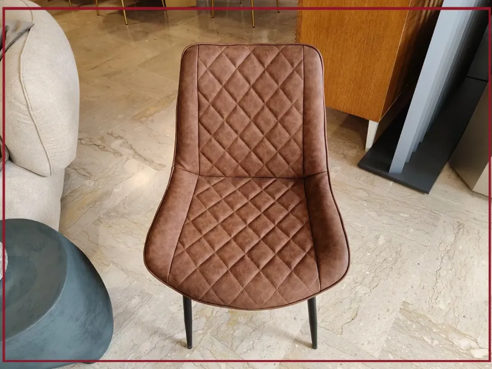 Il loro design pulito e senza tempo si inserisce con naturalezza in ambienti moderni, dove ogni dettaglio è pensato per valorizzare lo spazio senza sovrastarlo. Il rivestimento in ecopelle effetto vintage, con le sue sfumature e la lavorazione trapuntata, dona un senso di calore e vissuto, mentre le gambe in metallo nero Industry aggiungono un tocco deciso, quasi urbano, che le rende perfette anche in contesti più audaci.