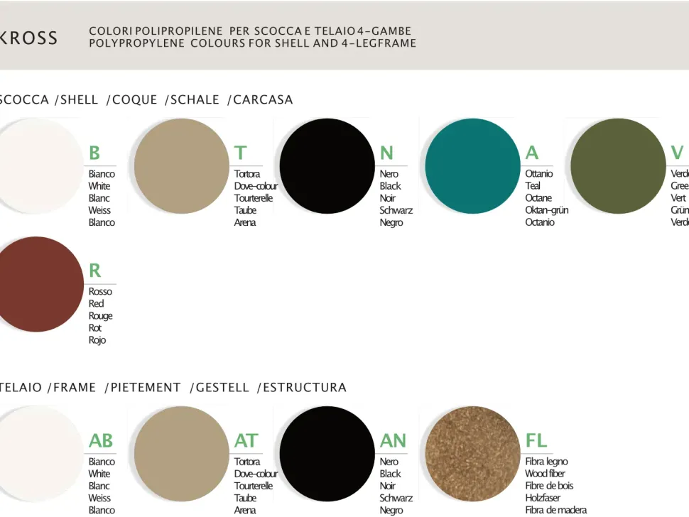 Sedia Kross 4 gambe in polipropilene e telaio verniciato nelle finiture tortora, nero e bianco.