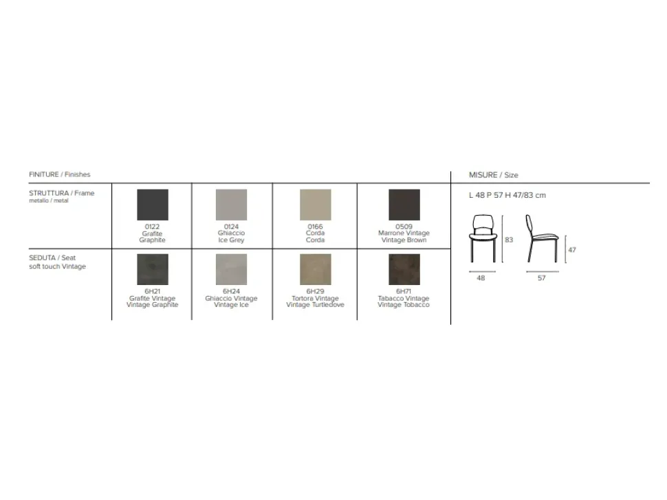 Sedia con struttura in metallo verniciato e seduta in morbido soft-touch vintage.