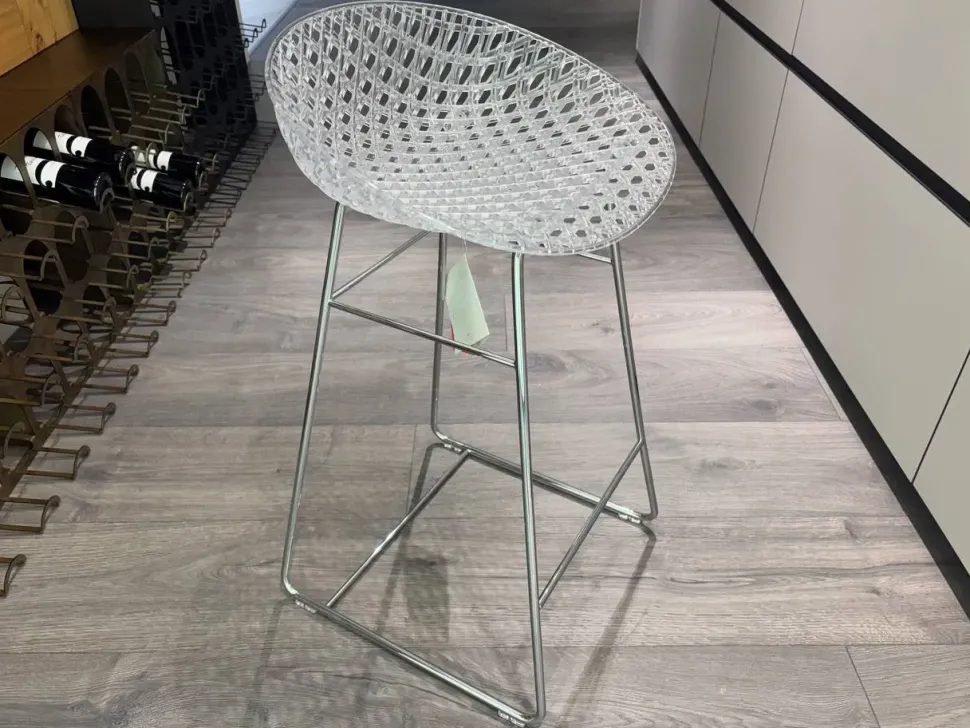 Gli sgabelli, nel locale cucina, nel living o anche in giardino, devono essere funzionali e resistenti a molteplici sostanze: se vuoi sedute in metallo a marchio Kartell, allora il modello Smatrik stool nella fotografia fa per te.