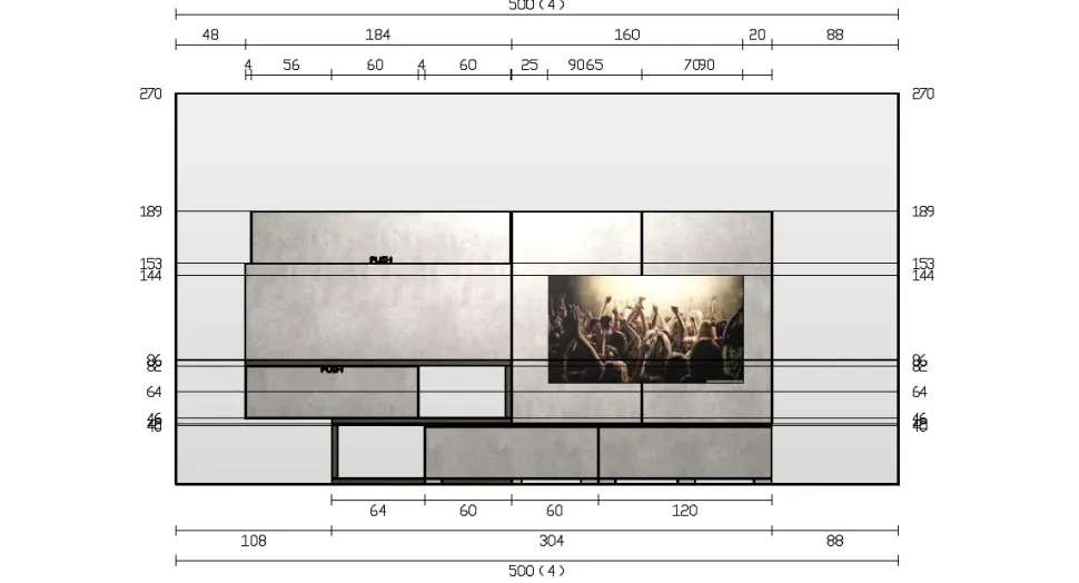 Con questa soluzione Imab, leader del settore arredamento, potrai ultimare in modo ottimale un soggiorno che va da 351 a 400 cm di larghezza.