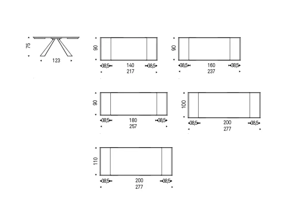 - Tipologia: rettangolari allungabili
