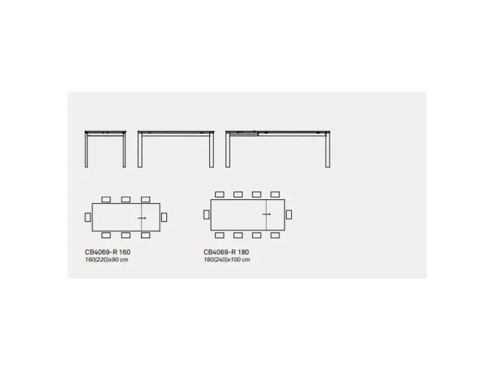 Dimensioni disponibili: L.160 P.90 H.75 allungabile fino a 220 cm; disponibile anche in altre versioni.