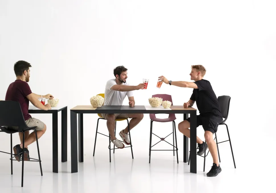 Il tavolo è abbinato alla sedia Eva ed alla sedia Elena della Point house disponibile in vari materiali e finiture.