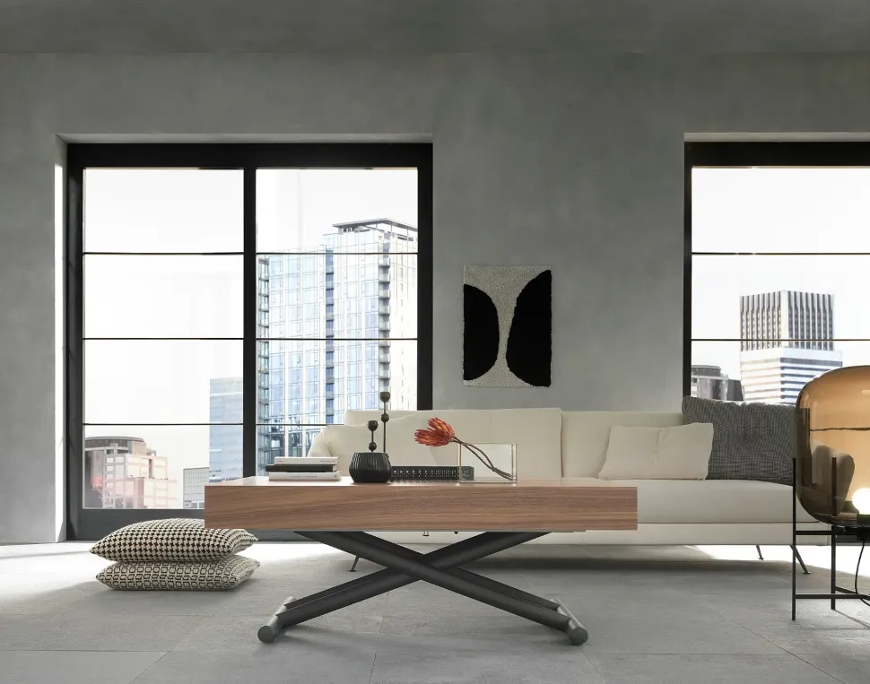 -Tavolino trasformabile in tavolo da pranzo.