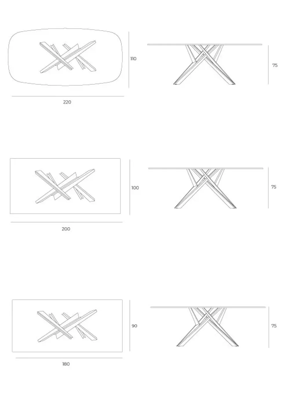 Specifiche tecniche del tavolo Diago