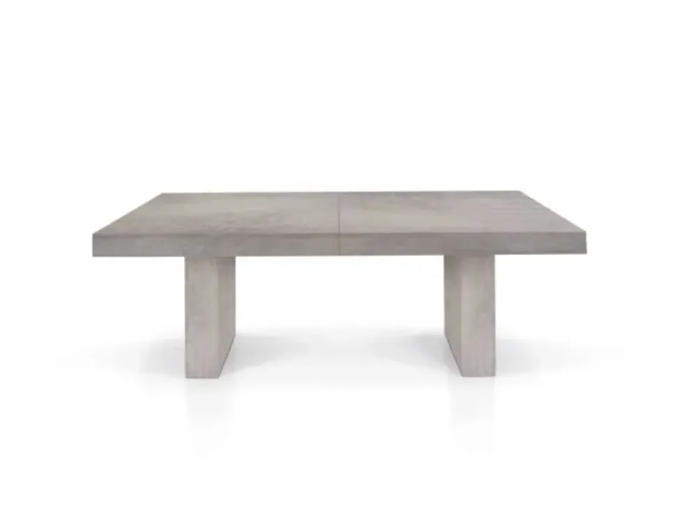 Tavolo in pronta consegna nella versione grigia 90 x 160 cm Altezza 76 cm. Compresa di 5 allunghe, poste sotto il piano, che permettono di allungare il tavolo fino a 410 cm. Struttura in bilaminato triplafoglia in resinato cemento e allunghe nello stesso colore del tavolo, il tavolo con le gambe conferiscono una alta stabilità al tavolo da aperto.