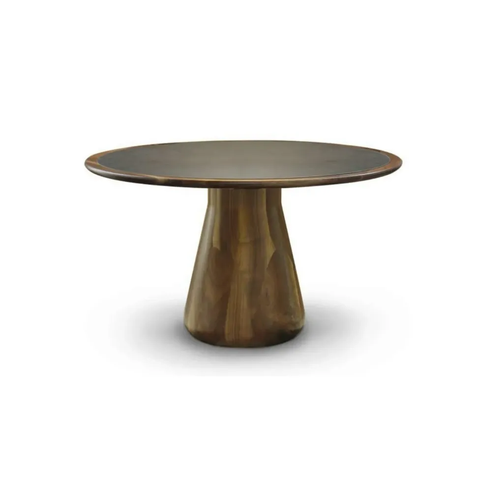 Tutta l originalità delle creazioni Dale Italia trova espressione nel tavolo in legno massello Convivio. Il gioco tra linee contemporanee e classiche genera un pezzo unico e senza tempo. Questo tavolo rotondo è disponibile in due varianti: in solo legno massello di noce canaletto o con piano in pregiata pelle italiana.