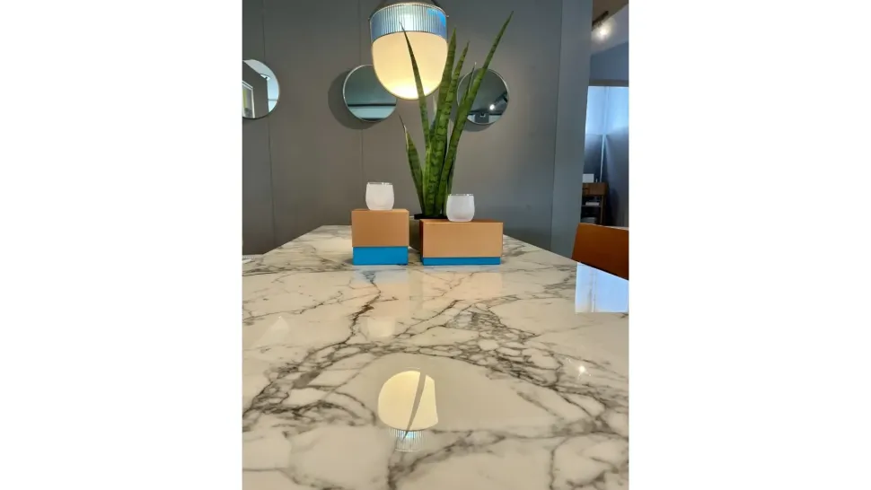 La lunghezza del tavolo qui disponibile, che va oltre 221 cm, rende questo modello Bolero Fisso adatto ad essere collocato in ambienti di varie misure, per valorizzare il locale in una varietà di risultati estetici; le misure dei mobili che desideri collocare nella tua casa sono davvero importanti da valutare, proprio perchè non devono assolutamente essere ingombranti. Linee ben studiate ed un effetto visivo dall’estetica raffinata connotano la struttura a cavalletto del tavolo qui disponibile: complessivamente, l’estetica del modello Bolero Poltrona frau non ti lascerà deluso. Al fine di completare perfettamente un living o una zona cucina in stile tradizionale o contemporaneo, il marchio Poltrona frau propone un’infinità di composizioni con tavoli di ogni genere e forma, tra cui anche quello qui disponibile rettangolare; realizzato con materiali durevoli e resistenti negli anni, il tavolo Bolero sarà capace di ultimare il tuo arredo ottimizzando gli spazi e assicurandoti una precisa uniformità di stile. Questo tavolo è l’acquisto perfetto per le aspettative individuali, in quanto in grado di unire funzionalità e stile grazie a qualità dei materiali e linee ben studiate; che tu abbia intenzione di ultimare un locale di ogni richiamo stilistico, sia esso legato alla tradizione o di design minimale, il tavolo Bolero fisso sarà capace di evidenziare il valore estetico del locale pur rimanendo imprescindibile dal punto di vista pratico. Se stai considerando svariate composizioni con tavoli di qualunque dimensione e forma per la tua casa, non dimenticare di valutare con attenzione anche i materiali con cui sono stati costruiti i piani: il cristallo, il legno massello, il metallo e le sostanze plastiche sono solo alcuni dei materiali definiti da intrinseche doti di funzionalità e stile; il tavolo Bolero qui in saldo consta di un piano in marmo dall’estetica raffinata.