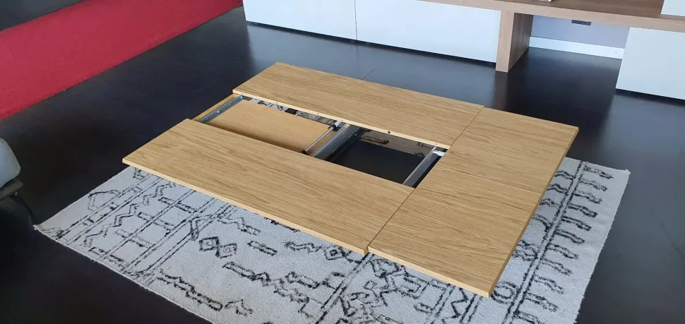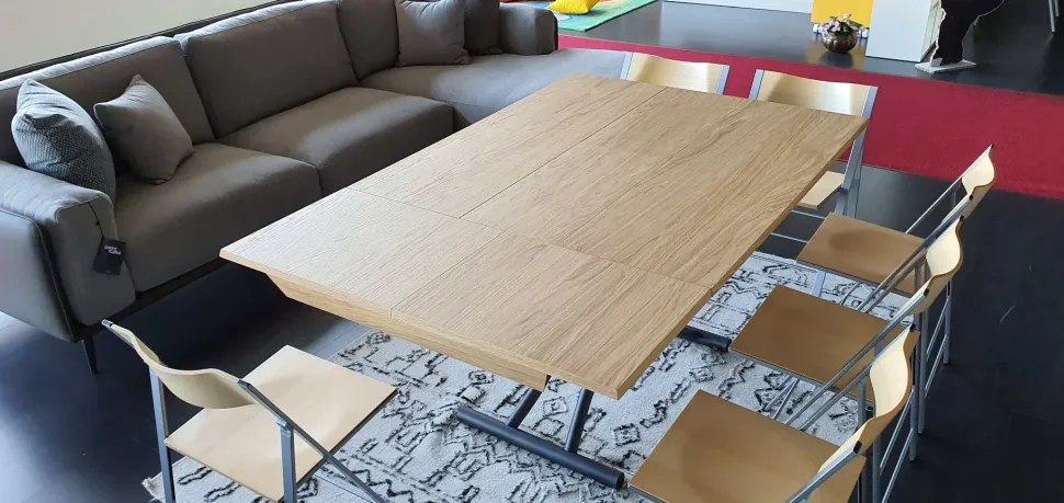 Il piano è allargabile così da creare a capo tavola lo spazio necessario per collocare ben 4 posti a differenza dei tavoli comuni che hanno solo un posto