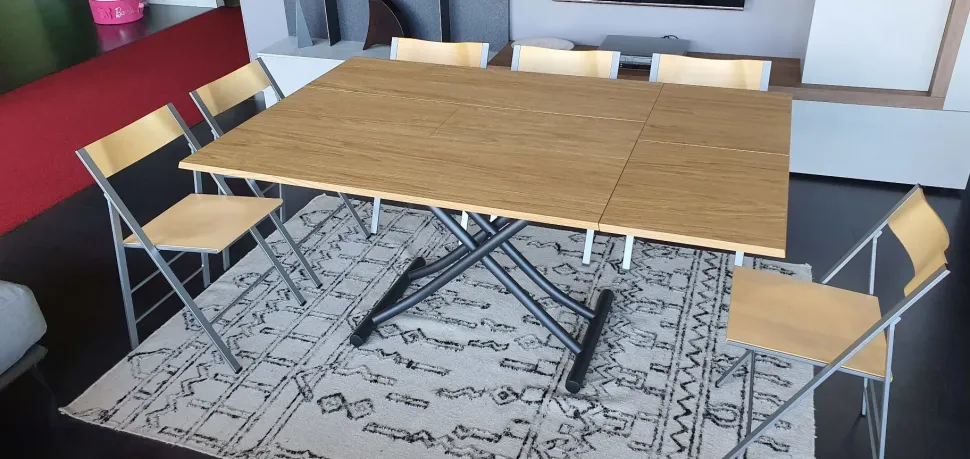 E’ ideale per chi non vuole rinunciare ad un tavolo da pranzo senza disporre di grandi spazi. Trova collocamento davanti al divano come comodo tavolino appoggia riviste e oggettistica d’arredo