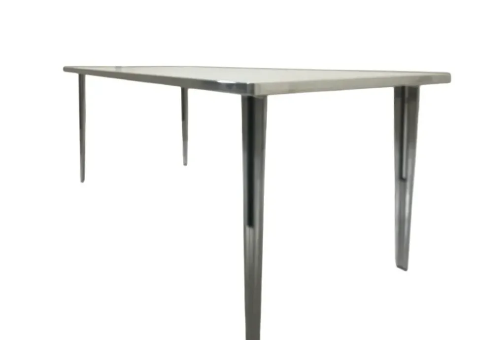 il colore delle gambe dal design molto particolare, realizzate con un sistema di pressofusione di alluminio finitura lucida come il bordo del tavolo.