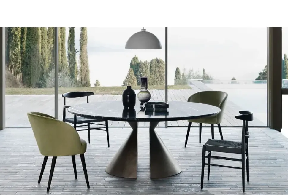 - Grazie alla sua forma rotonda, il Modello Ninbo di Presotto è in grado di offrire un’atmosfera accogliente ed elegante all’ambiente.