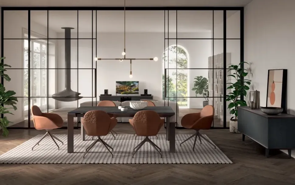 Nell’area pranzo o nella zona giorno, la scelta dei tavoli è vincolata allo spazio disponibile: la norma generale prevede che ci sia lo spazio indispensabile per muoversi con libertà nell’area tra il tavolo e la possibile parete retrostante; la scelta dei tavoli, dunque anche questo modello Metro’ quadro scontato, dipende dallo stile del locale e dell’arredo già presente.
