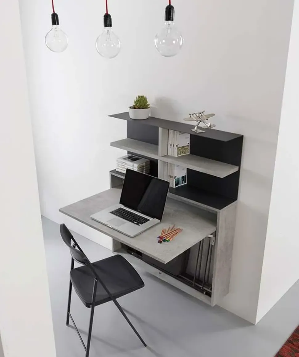 Bureau è composta da un tavolo/scrivania a scomparsa a parete, al cui interno possono essere riposte fino a 3 sedie chiudibili modello Zeta, e da un’ampia libreria da parete con struttura in acciaio verniciato. Bureau è l’elemento perfetto per arredare la propria casa in modo professionale ed elegante, e nel rispetto dell’ambiente: infatti il piano di questa scrivania è in laminato ecologico, che garantisce comunque grande stabilità ed efficienza.Il suo design, dalle linee semplici ma estremamente raffinate, lo rende un prodotto ricco di personalità che darà un tocco di modernità alla tua casa.