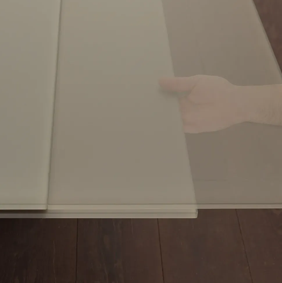 – 106 x 200 cm fisso – piano in cristallo tortora chiaro satinato velvet e base in tinta