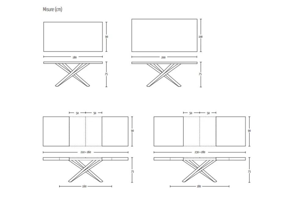 - Tipologia: rettangolari allungabili