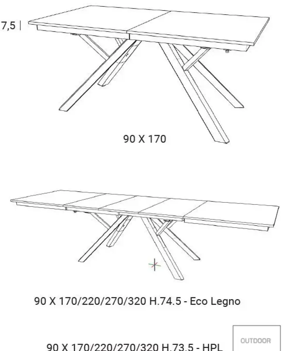 - Tipologia: rettangolari allungabili