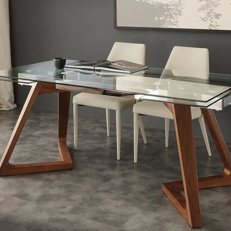 - Durante l’acquisto dei tavoli da posizionare in casa, è consigliabile fare molta attenzione anche alle finiture con cui sono stati fatti, in quanto assumono diversificate qualità pratiche ed estetiche in base al tipo di piano: il tavolo Gaudì qui visibile ne include uno realizzato in vetro di grande effetto visivo, sopra al quale potrai posare oggetti d’uso quotidiano nonchè tipicamente decorativo.