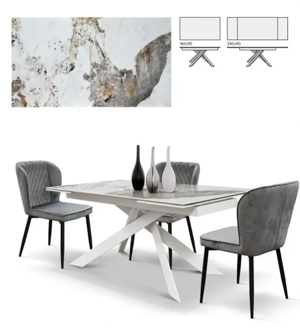 - Struttura in metallo colore Bianco, con piano rettangolare in ceramica Luxury pandora.