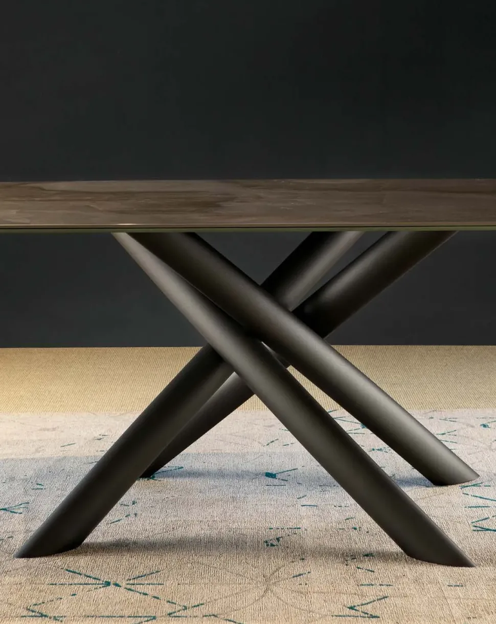 - Una struttura con basamento centrale ultima il valore estetico del tavolo Rettangolare qui disponibile, che si confermerà in tal modo presenza caratterizzante del living o della zona cucina dove sarà collocato, grazie alla sua figura di gran classe.