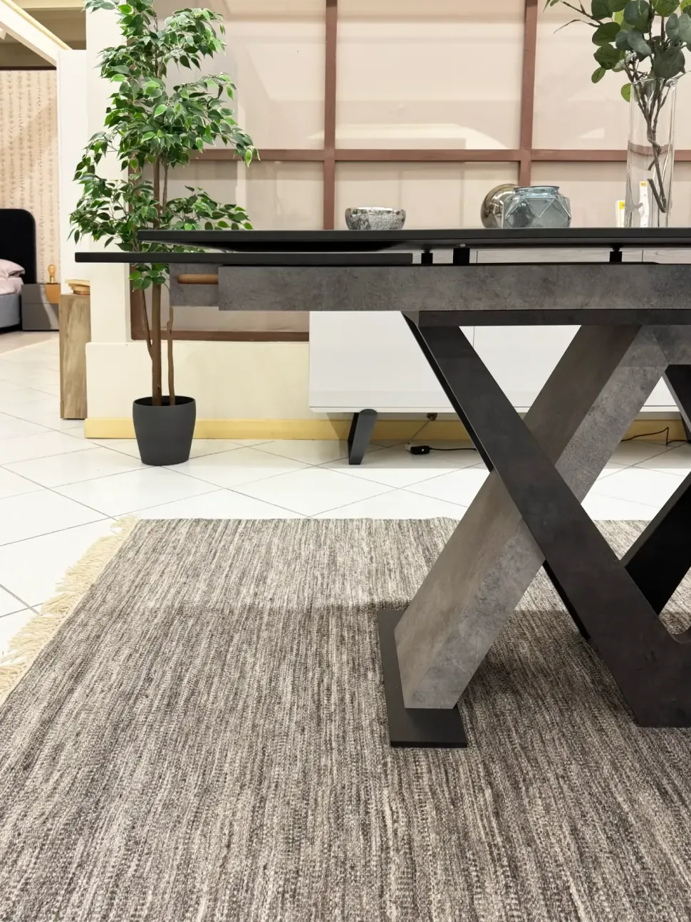 La base è composta da due elementi geometrici in laminato con finiture abbinate, in questo caso argento e piombo, che creano un effetto raffinato e contemporaneo. A proteggerlo nel tempo ci sono due piccole lastre di metallo che lo difendono dall usura e dall acqua. Il piano allungabile è in HPL (laminato ad alta pressione), un materiale ultra resistente a graffi, umidità, calore e sollecitazioni. Perfetto per un utilizzo quotidiano senza preoccupazioni.