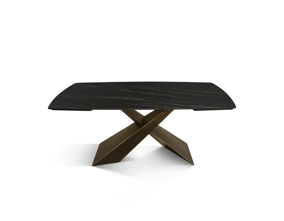Questo tavolo Tavolo modello golden è caratterizzato da una struttura con basamento centrale che ne integra l’estetica, interamente costruito con materiali pregiati e resistenti nel tempo.