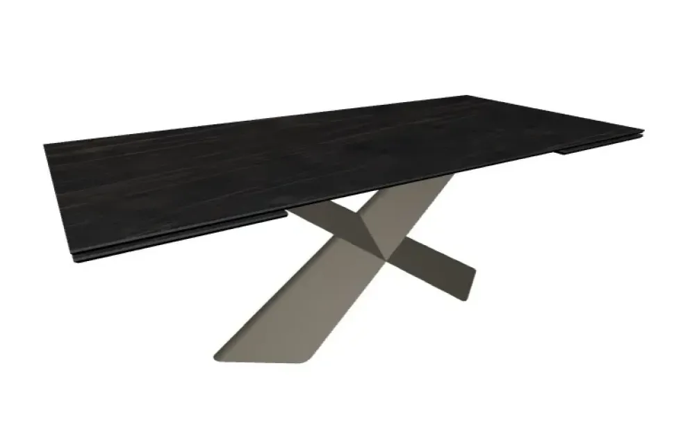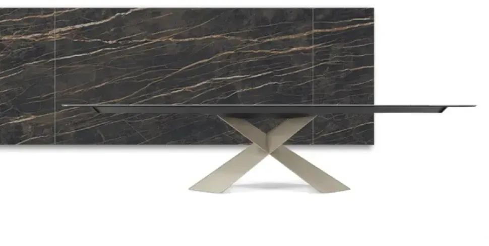 Tavolo CATTELAN ITALIA MOD.TYRON allungabile con base in acciaio verniciato goffrato titanio (GFM11) e Piano e prolunghe in ceramica Marmi nel colore Portoro opaco (KM07) . TAVOLO CHIUSO NELLA MISURA 200×100 E ALLUNGABILE A 294 CM H.74 CM.