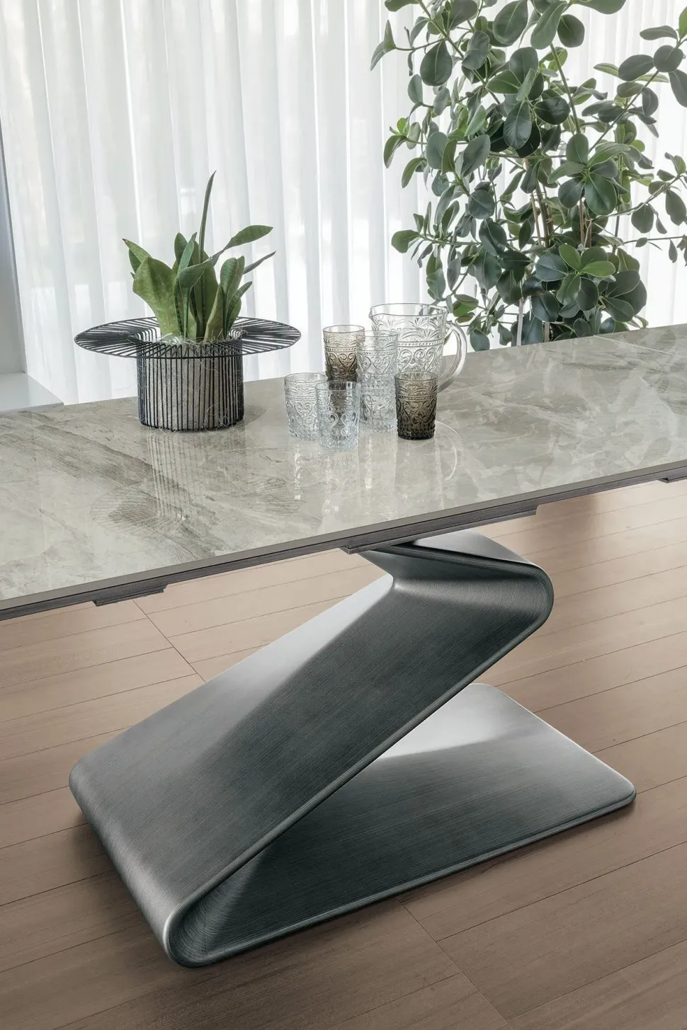 - Basamento con basamento centrale: il Tavolo Zed di Target Point ha un basamento con un basamento centrale che lo rende stabile e resistente.