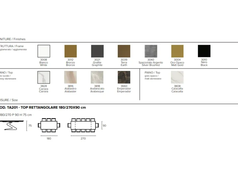 Dimensioni: 180×90 cm estensibile a 270 cm.