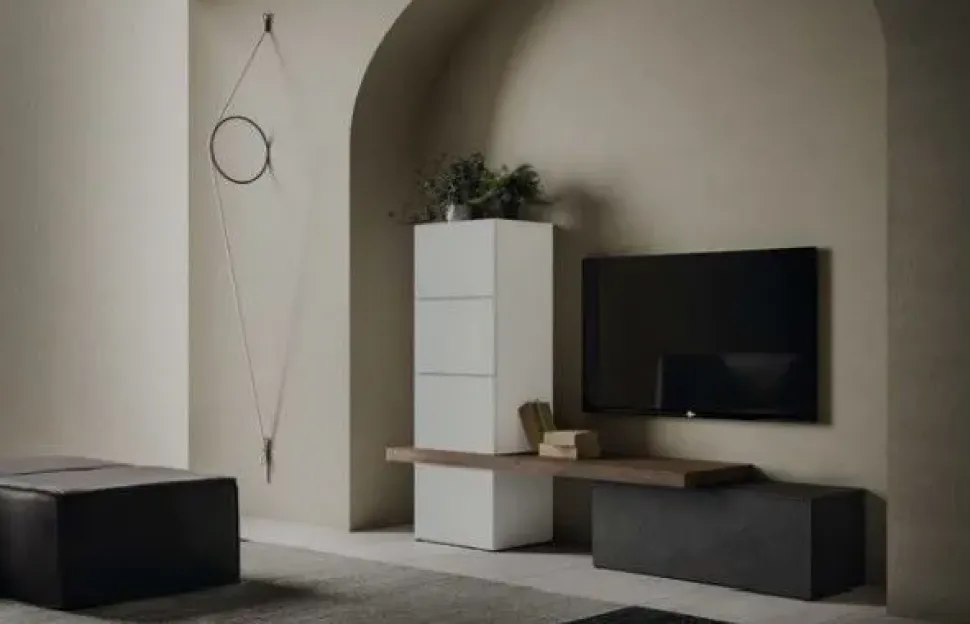 Una scelta che coniuga eleganza e funzionalità, poichè dotata di un ampio cassettone contenitivo e una colonna per riporre tutto ciò che serve in una zona living. Il piano (panka) permette invece di appoggiare ogni oggetto e collega i due vani contenitivi in modo sobrio. In questo modo potrete avere un soggiorno ordinato ed essenziale.