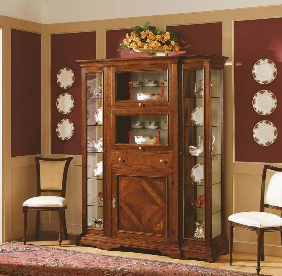 Stile, misure e finiture del modello Vetrina con ante parquet in noce scontata del 50%